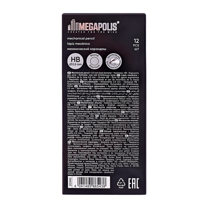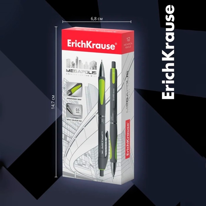 Карандаш механический ErichKrause "Megapolis Concept", НВ, грифель d=0.5 мм, резиновый упор, в коробке