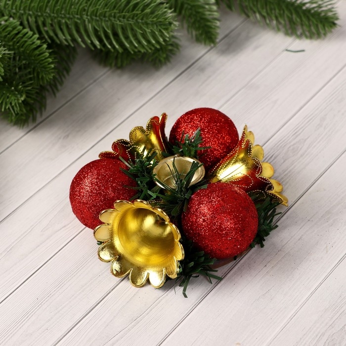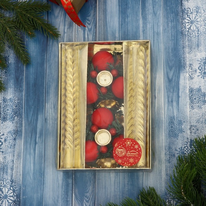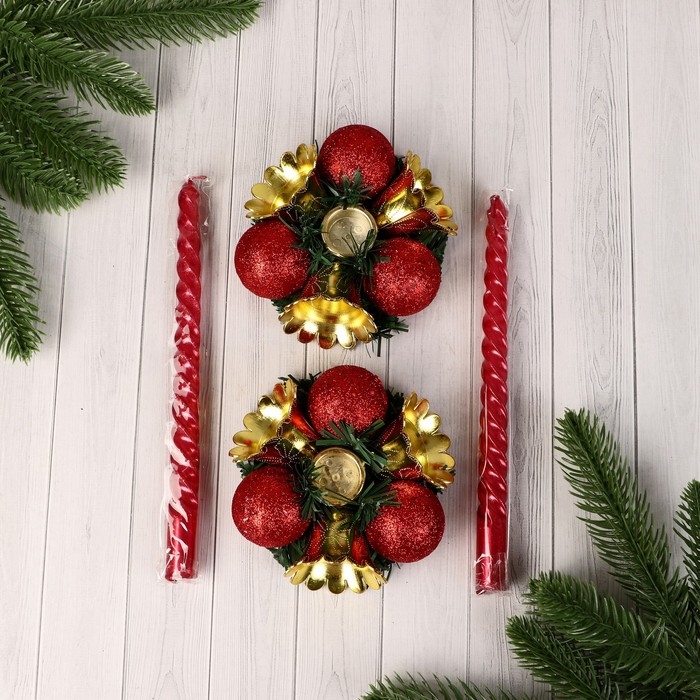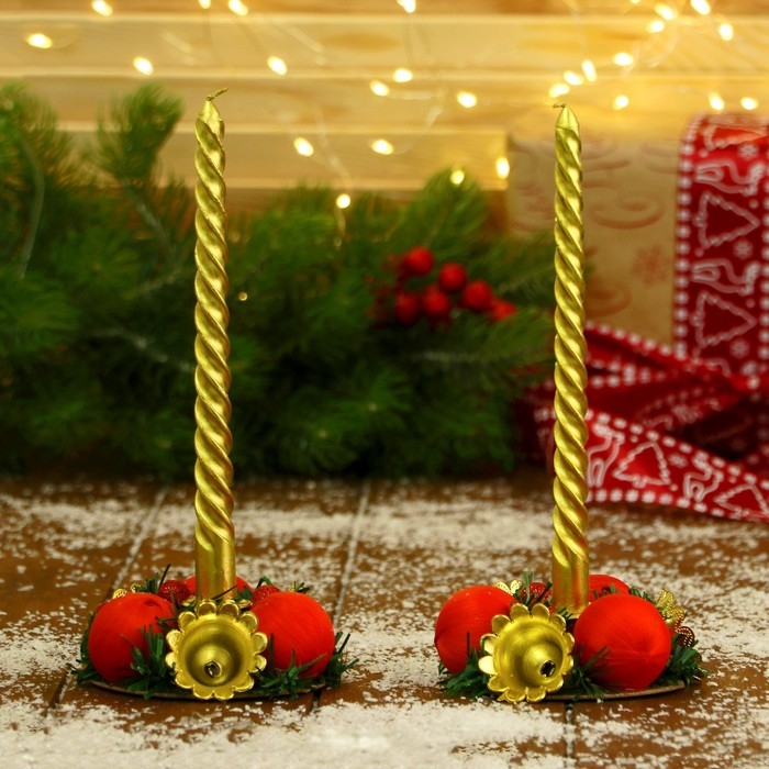 Свеча новогодняя с подсвечником "Шарик, бусина" (набор 2 шт) 14,5х20 см, красно-золотой — это оригинальное украшение для праздничного стола, а ещё это красивый новогодний подарок. Порадуйте себя и близких сказочным настроением!