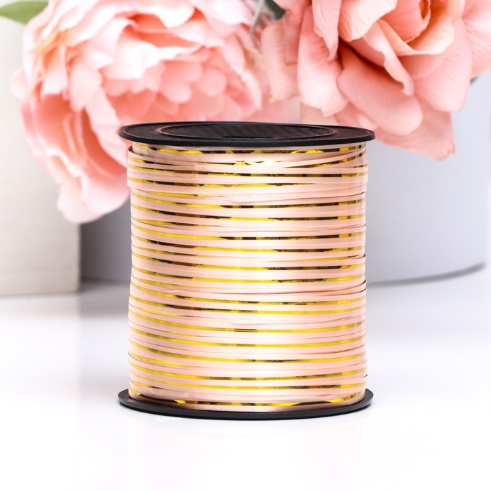 Лента упаковочная с золотой полосой, розовая, 5 мм х 225 м