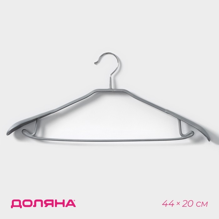 Плечики - вешалка для одежды Доляна, 44×20 см, широкие плечики, антискользящее покрытие, цвет серый
