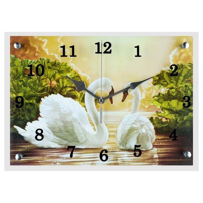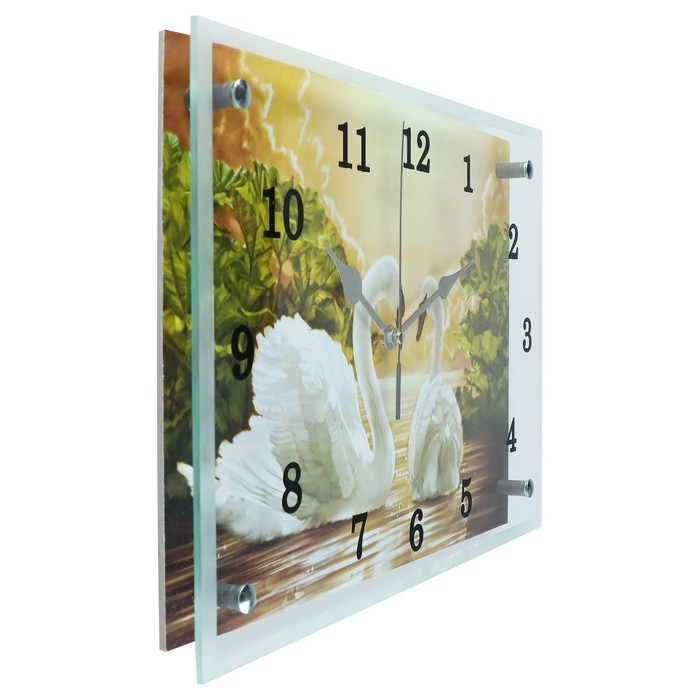 Часы-картина настенные, серия: Животный мир, "Лебеди", 25х35 см