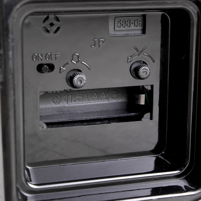 - Будильник оснащён кварцевым механизмом с дискретным ходом стрелок.