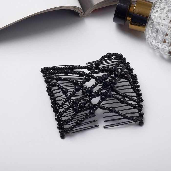 Зажим для волос "Сетка" бусины, 9,5 см, чёрный