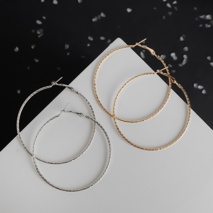 Серьги-кольца «Рельеф», цвет МИКС, d=5,7 см пригодятся каждой моднице, ведь с помощью них так просто создать рабочий вариант наряда и даже отправиться на свидание. Они придадут образу своей обладательницы чуть больше лёгкости, подчеркнут присущую ей женственность и шарм.