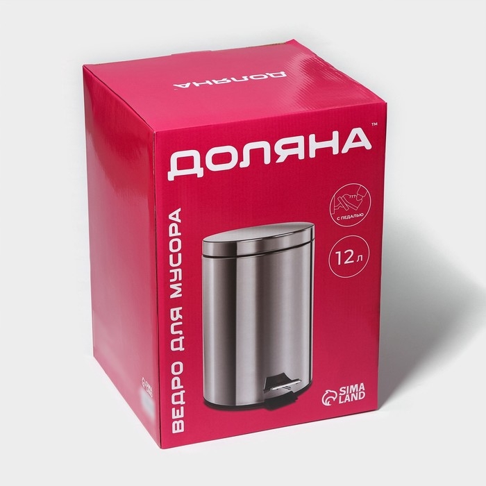Ведро с педалью Доляна, 12 л, нержавеющая сталь