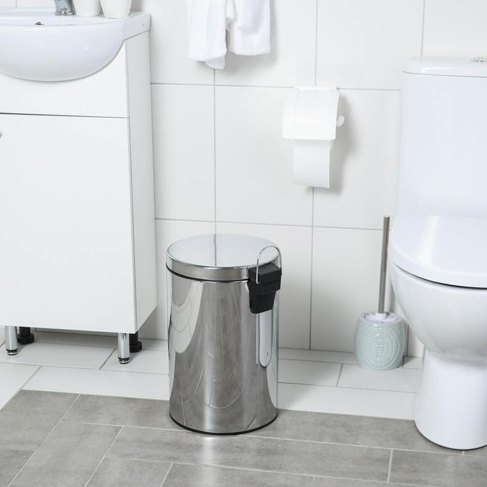 Ведро мусорное с педалью Доляна, 5 л, нержавеющая сталь, цвет хромированный