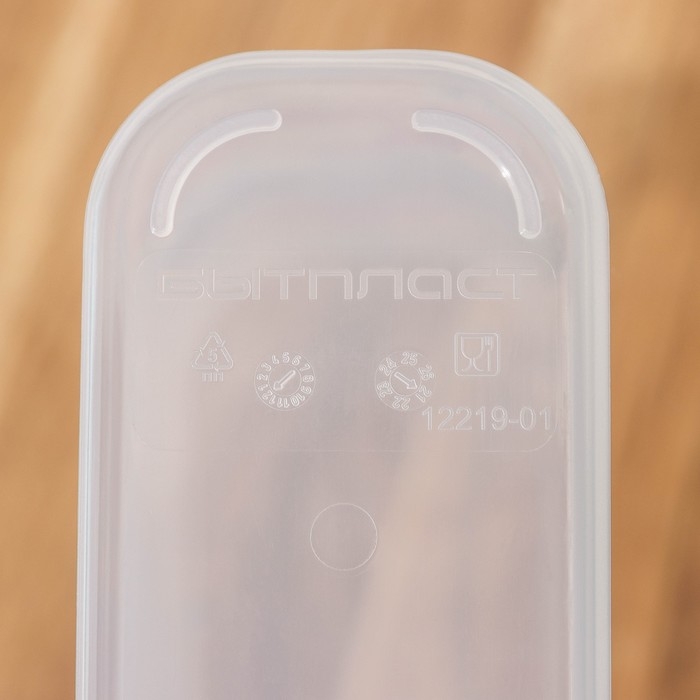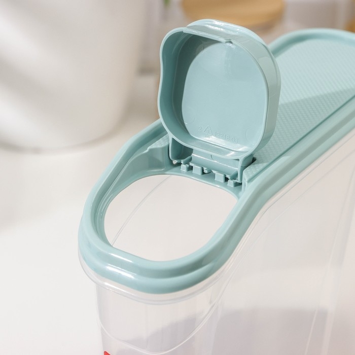 Банка для сыпучих продуктов изготовлена из пластика. Имеет плотно закрывающуюся крышку, которая защищает еду от влаги и посторонних запахов. В ёмкости удобно хранить крупы, специи, макаронные изделия, сахар, муку и бобовые.