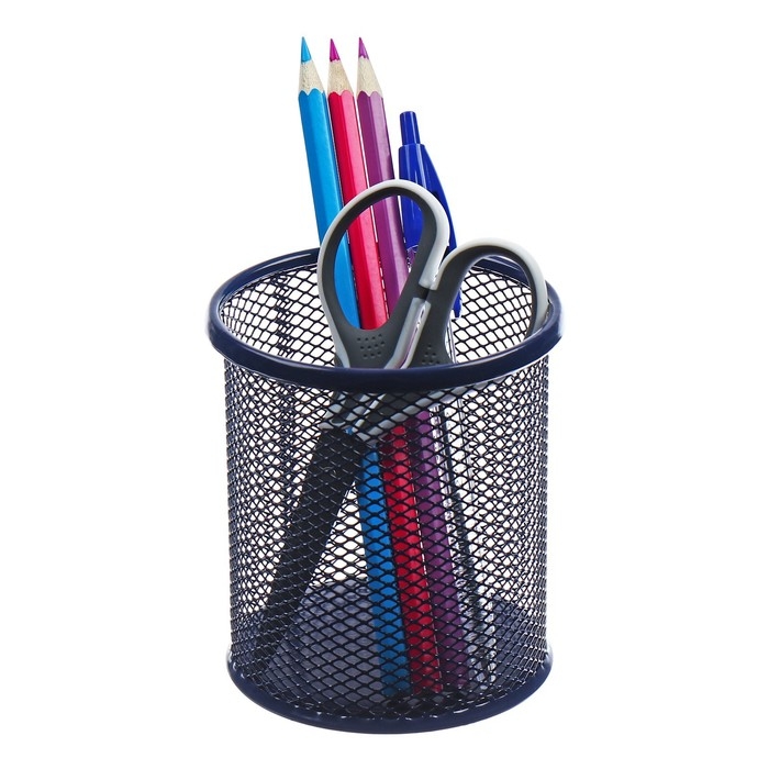 Стакан для пишущих принадлежностей, круглый, металлический, синий