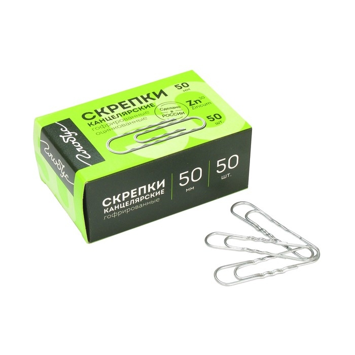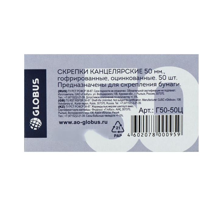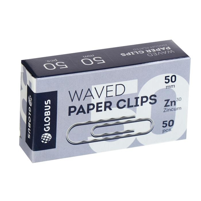 Скрепки канцелярские GLOBUS, 50 шт., 50 мм, оцинкованные, гофрированные