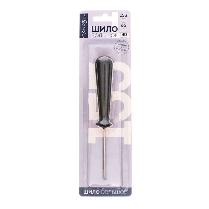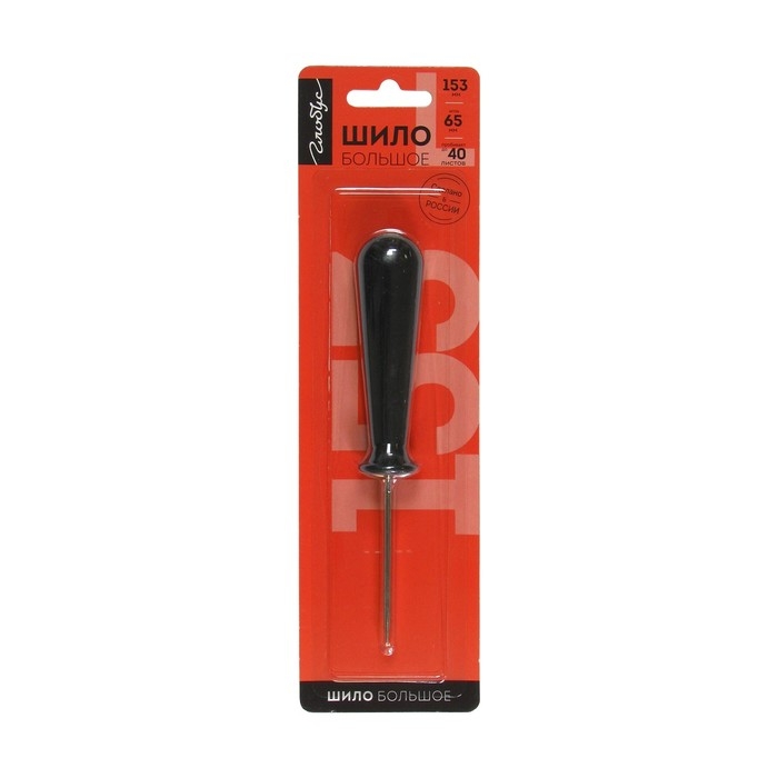 Шило канцелярское, большое. Длина острия — 70 мм. Диаметр острия — 3 мм. Удобная пластиковая ручка. Предназначено для прокалывания бумаги. Обеспечивает прокалывание не менее 40 листов бумаги одновременно. Упаковка — блистер, европодвес..
