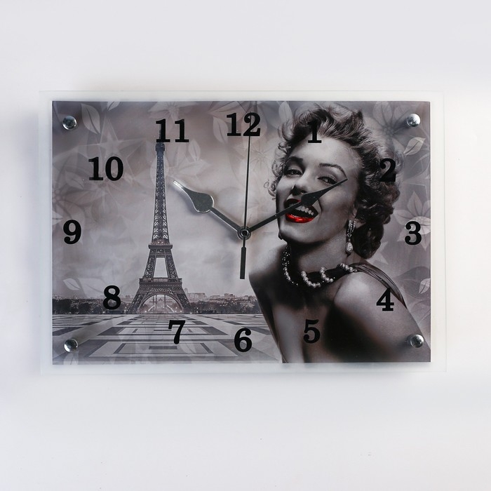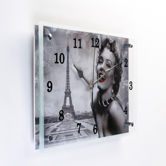 Часы-картина настенные, интерьерные "Мэрилин Монро в Париже", бесшумные, 25 х 35 см
