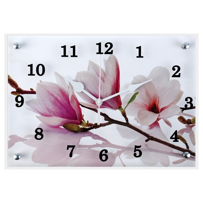Часы-картина настенные, интерьерные "Бело-сиреневые цветы", бесшумные, 25 х 35 см
