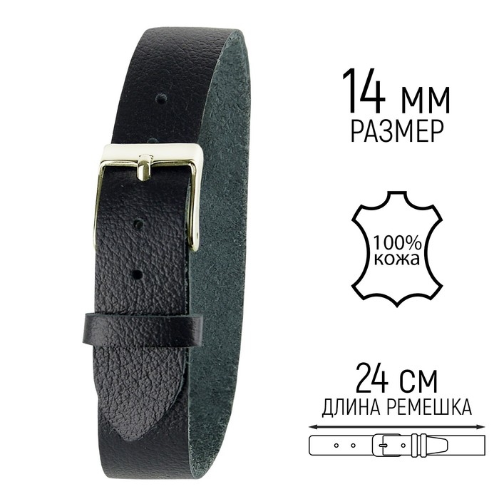 Ремешок для часов, женский, 14 мм, l= 24 см, натуральная кожа, чёрный