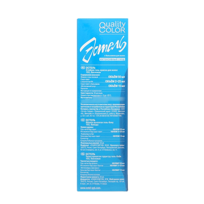 Стойкая гель-краска для волос Estel Quality Color российского бренда Юникосметик. В состав краски входит комплекс витаминов - С, В5, РР, действие которых направлено на укрепление и защиту волос от кончиков до корней. Витаминный комплекс повышает порог сопротивляемости волос к негативным внешним факторам, способствует восстановлению и обновлению клеток волоса. Гелеобразная консистенция краски очень удобна и позволяет проводить окрашивание в домашних условиях.