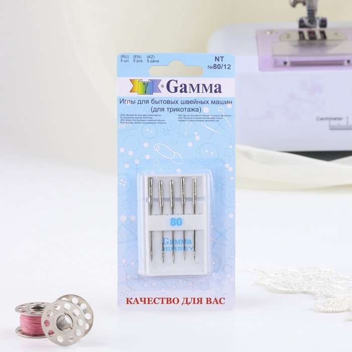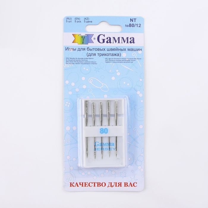 Иглы для бытовых швейных машин, для трикотажа, №80/12, 5 шт, NT