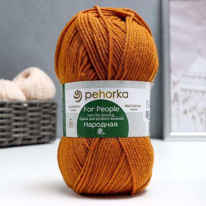 Пряжа "Народная" 30% шерсть, 70% акрил объёмный 220м/100гр (447-Горчица)