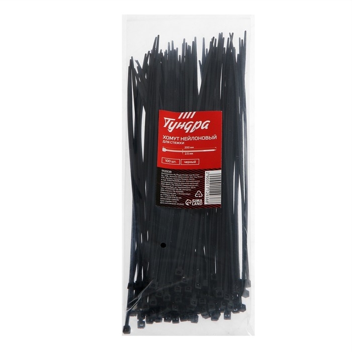 Хомут нейлоновый ТУНДРА krep, для стяжки, 2.5х200 мм, черный, в упаковке 100 шт.