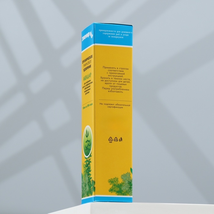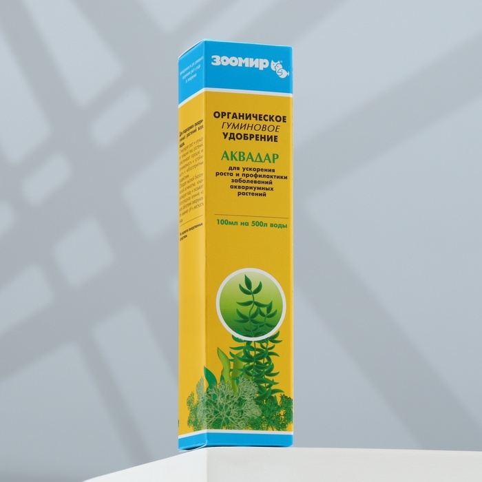 «Аквадар» — это подкармливающее удобрение для аквариумных растений всех разновидностей. Оно стимулирует рост и улучшает внешний вид подводной зелени. Растения быстро укореняются и становятся менее требовательными к замене воды, а их окраска постепенно начинает выглядеть ярче. «Аквадар» полностью подавляет развитие сине-зелёных, бурых и диатомовых водорослей. Абсолютно безвредно для рыб и мальков. Средство содержит все необходимые микро- и макроэлементы (калий, азот, фосфор). ПрименениеПрепарат используется раз в неделю, исходя из расчёта 2 мл на каждые 10 литров аквариумной воды. Удобрение необходимо равномерно разлить по аквариуму, активно перемешивая. Норму внесения препарата следует уменьшить вдвое, если грунт сильно заилен, вода заменяется нерегулярно и не полностью. Внимание: применение неразбавленного удобрения может негативно сказаться на обитателях аквариума.Объём: 100 мл.
