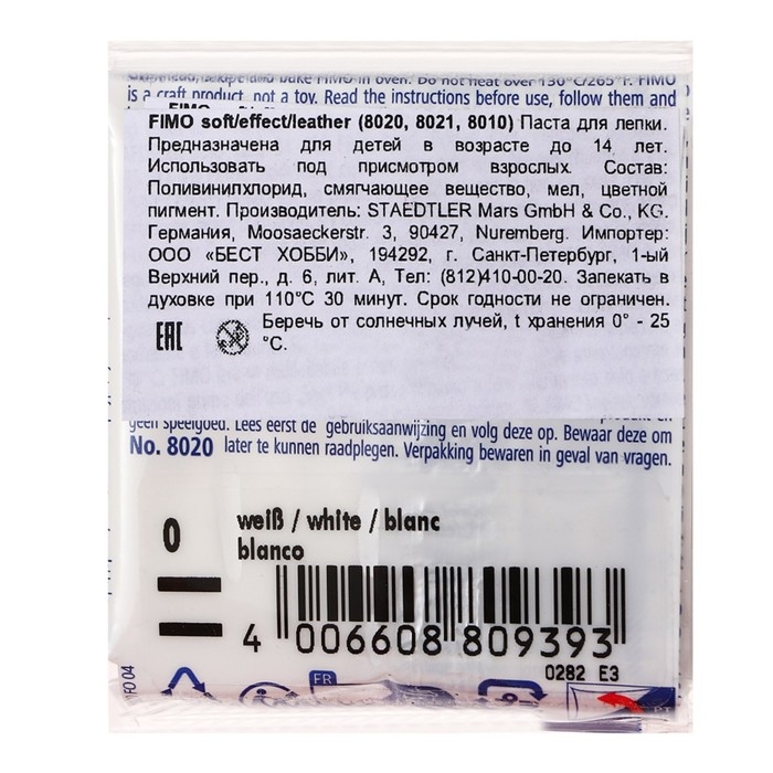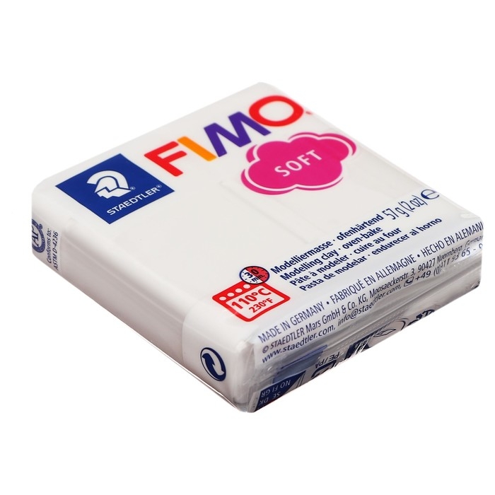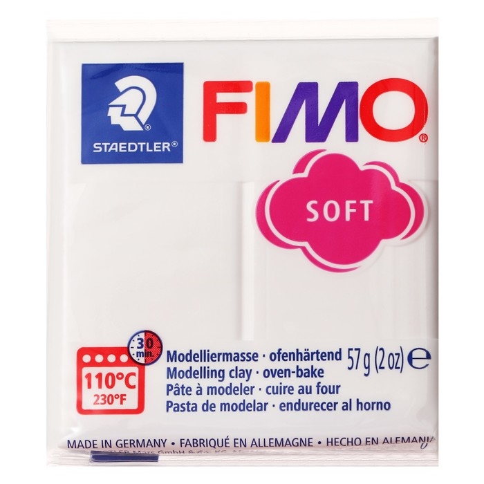 Полимерная глина FIMO подходит для начинающих мастеров и професиональных художников.ОсобенностиМасса мягкая, поэтому вы легко придадите ей нужную форму.Цвета можно смешивать для получения необходимых оттенков, которые сохранятся после обжига.После запекания изделия становятся прочными и долговечными.Упаковка легко открывается без использования ножа. Если вы не полностью израсходовали блок, то остатки можно завернуть в упаковку — так глина лучше сохранится.Термическая обработка. Готовое изделие поместите внутрь духовки на тарелке, стекле или фольге. Температура обжига не должна пpeвышaть 130 °С.Пластика рекомендована для детей старше 8 лет.