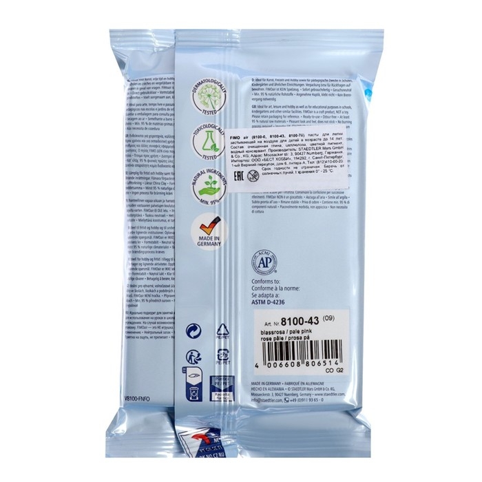Глина FIMO air basic на 97 % состоит из натуральных веществ, не требует обжига. Подходит для детского творчества