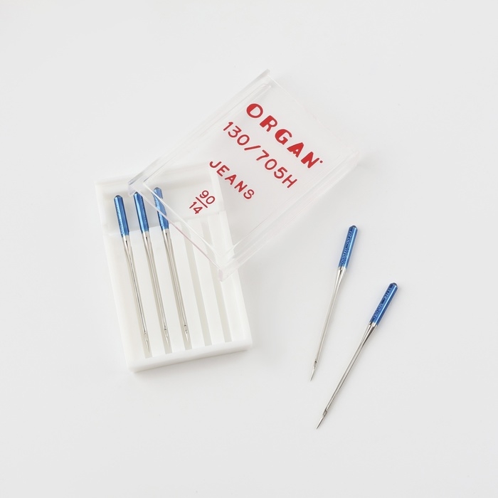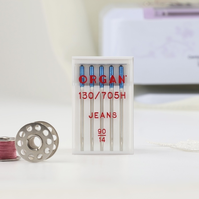 Качество швейной иглы важно так же, как механизм машинки. Модель для шитья джинсовых тканей легко проникает сквозь прочное полотно, не повреждая его. У неё усиленный стержень, чтобы инструмент не ломался и не пропускал стежки при отклонении.