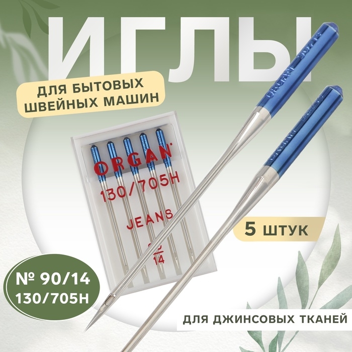 Иглы для бытовых швейных машин, для джинсовых тканей, №90/14, 5 шт