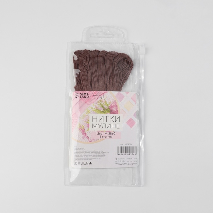 Набор ниток мулине №3860, 8 ± 1 м, 6 шт, цвет какао