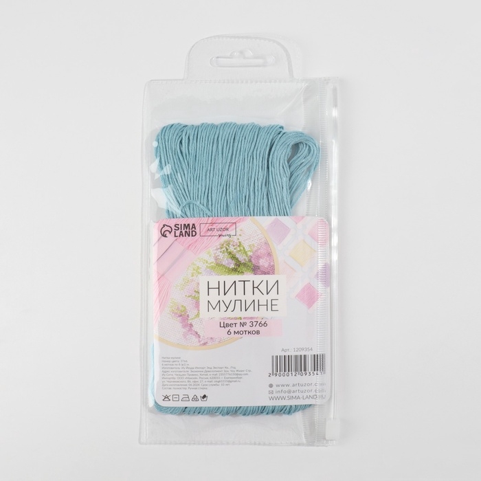 Набор ниток мулине №3766, 8 ± 1 м, 6 шт, цвет пыльно-голубой