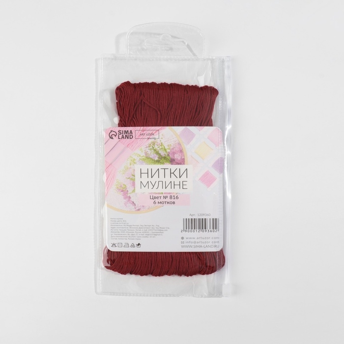 Набор ниток мулине №816, 8 ± 1 м, 6 шт, цвет гранатовый