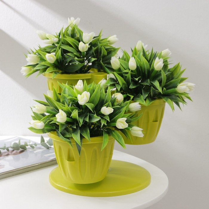 Кашпо многоярусное «Каскад», 3 шт, 700 мл, зелёное