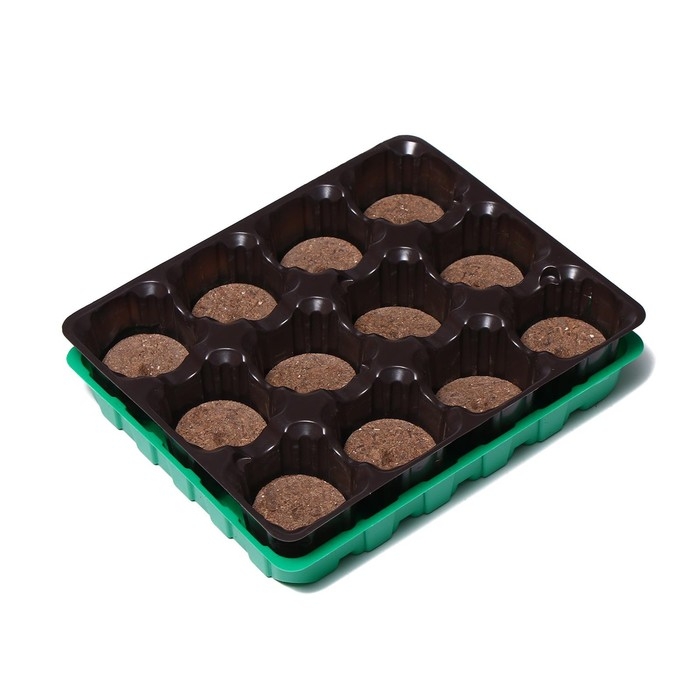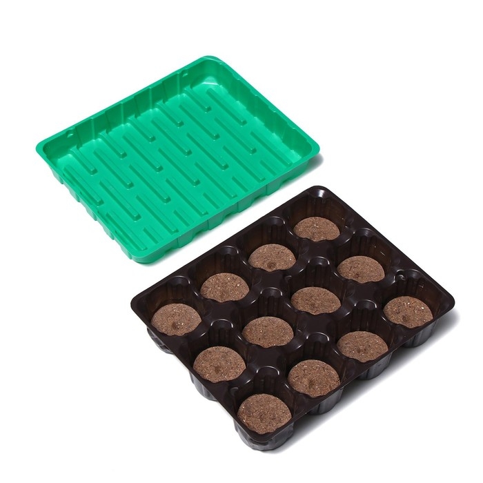 Набор для рассады: торфяная таблетка d = 4.1 см, 12 шт., кассета на 12 ячеек по 40 мл, поддон 20,5 × 17 см, зелёный, пластик, Экоторф