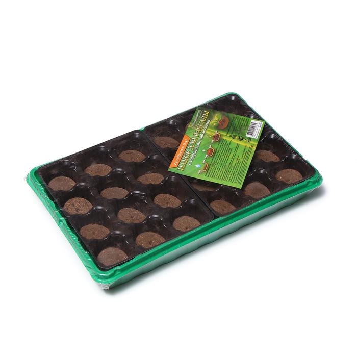 Набор для рассады: торфяная таблетка d = 4.1 см, 24 шт., кассета на 24 ячейки по 40 мл, поддон 35,5 × 22,5 см, зелёный, пластик, Экоторф