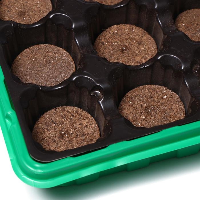 Набор для рассады: торфяная таблетка d = 4.1 см, 12 шт., кассета на 12 ячеек по 40 мл, поддон 20,5 × 17 см, зелёный, пластик, Экоторф