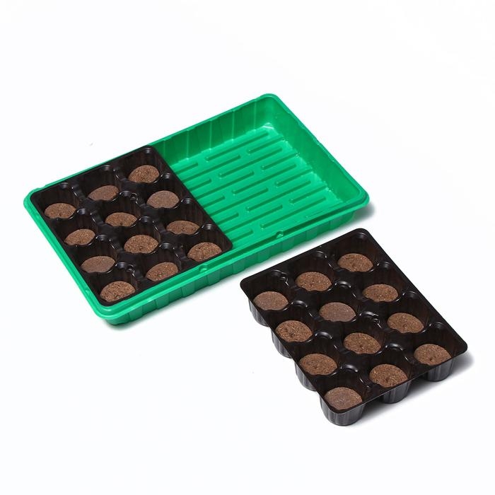Набор для рассады: торфяная таблетка d = 5.5 см (15 шт.), кассета на 15 ячеек по 150 мл, поддон, зелёный