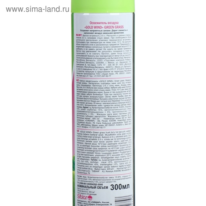 Освежитель воздуха "Голд Винд" 2 в 1 зеленая трава, 300 мл