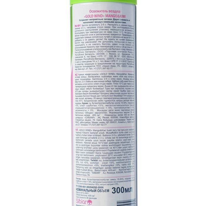 Освежитель воздуха "Голд Винд" 2 в 1 манго и киви, 300 мл