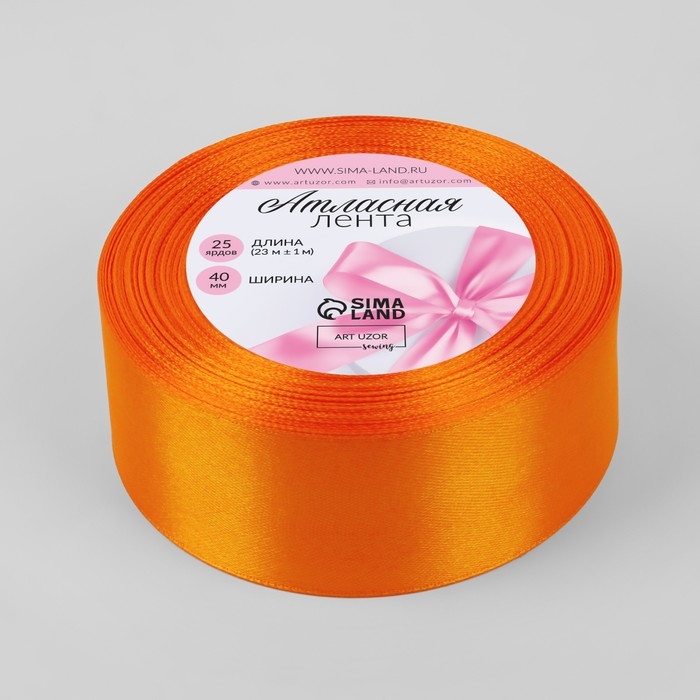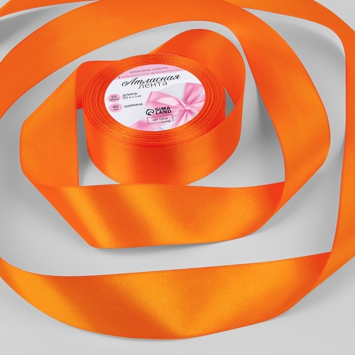Лента атласная, 40 мм × 23 ± 1 м, цвет ярко-оранжевый №25