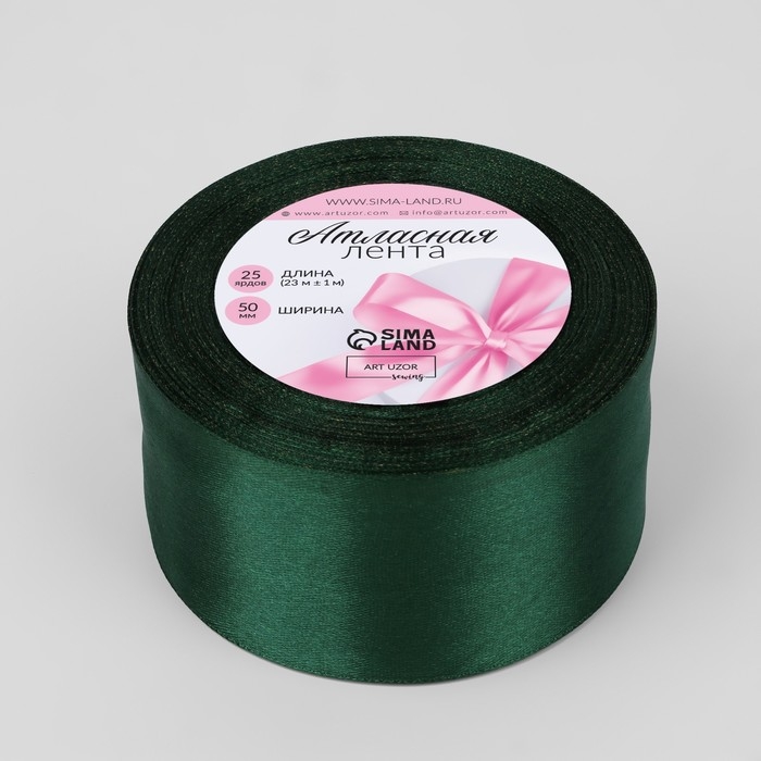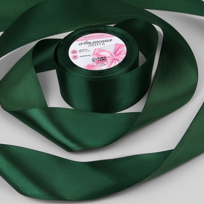 Лента атласная, 50 мм × 23 ± 1 м, цвет тёмно-зелёный №128