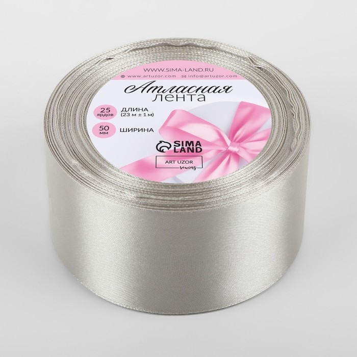 Лента атласная, 50 мм × 23 ± 1 м, цвет светло-серый №179