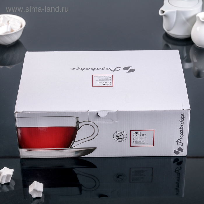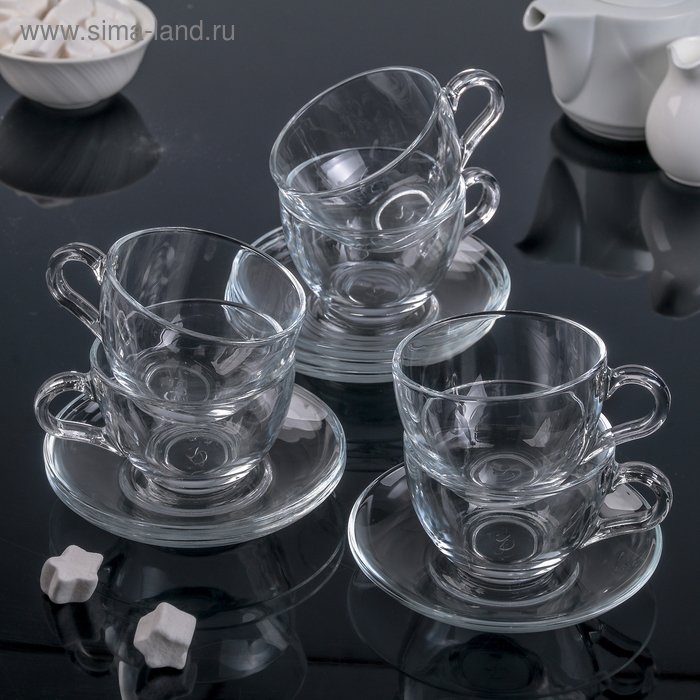 Набор чайный стеклянный Basic, 12 предметов: 6 чашек 215 мл, 6 блюдец d=13,7 см