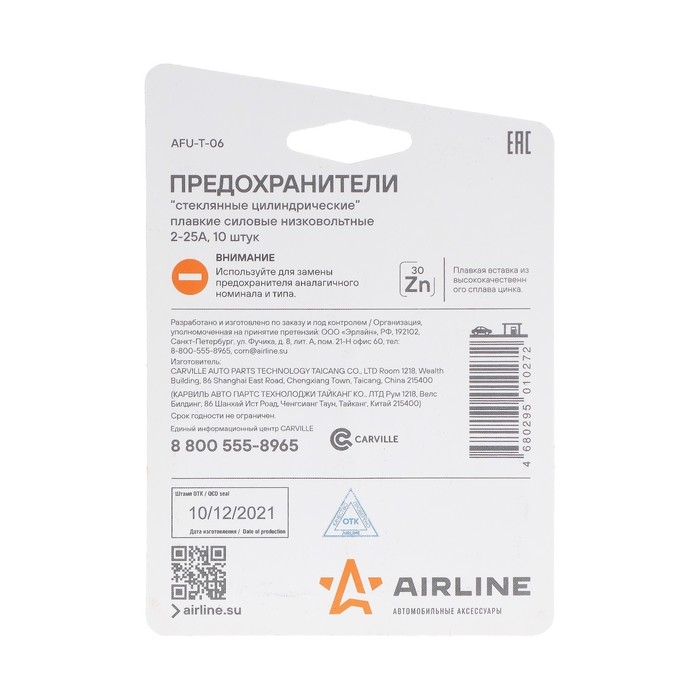 Предохранители Airline «стандарт», 5 - 30 А, набор, 10 шт.