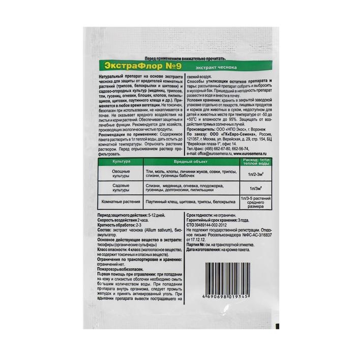 Средство для защиты от вредителей ЭкстраФлор №9 от щитовки и паутинного клеща, 1 г