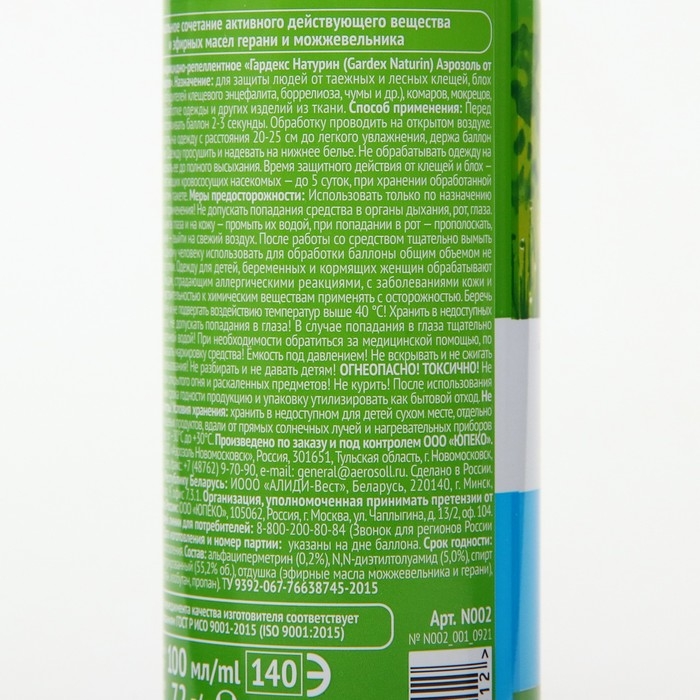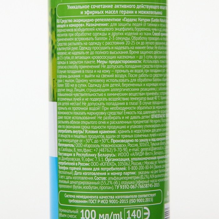 Аэрозоль от клещей и комаров "Gardex Naturin", флакон, 100 мл