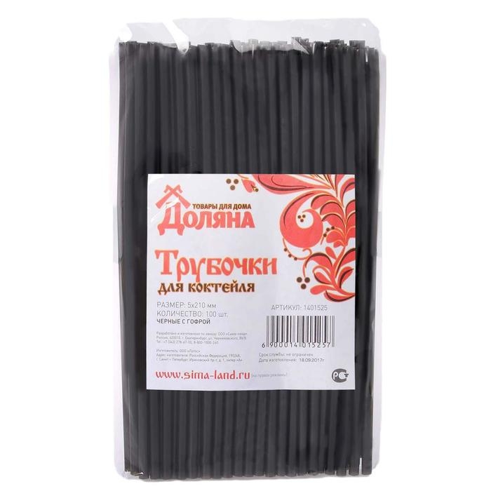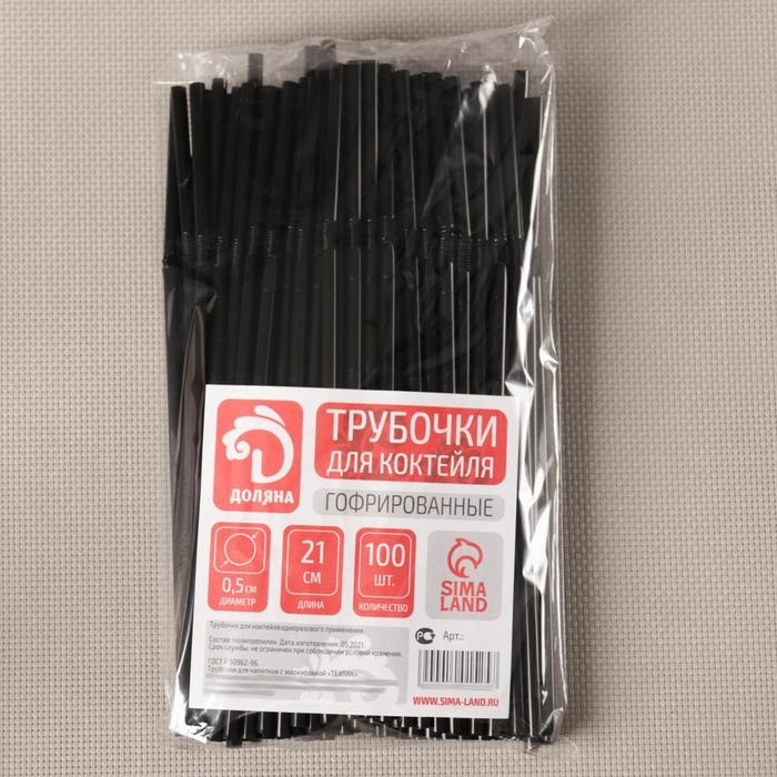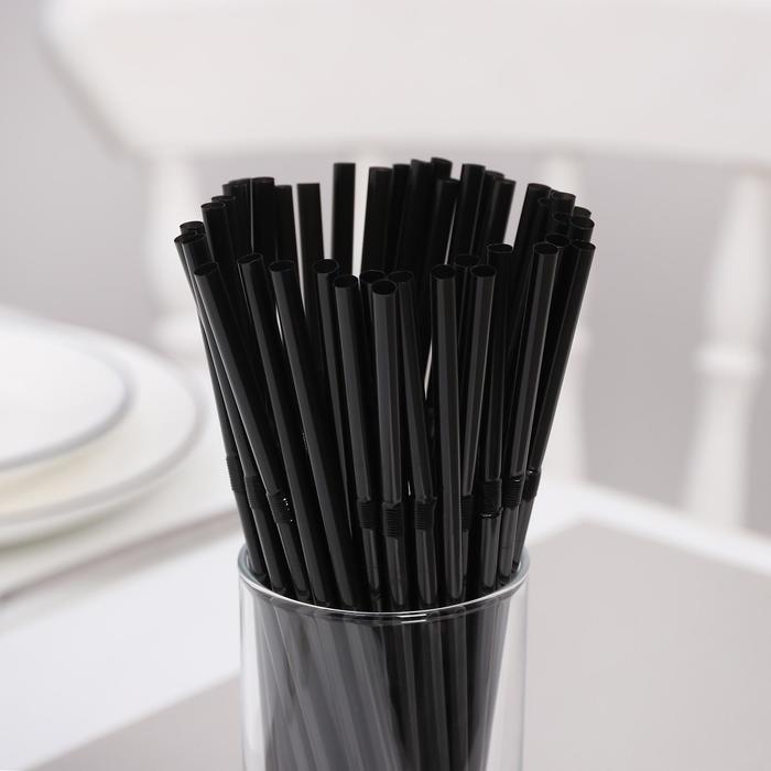 Трубочки одноразовые для напитков Доляна, 21 см, d=5 мм, с гофрой, чёрные, 100 шт.