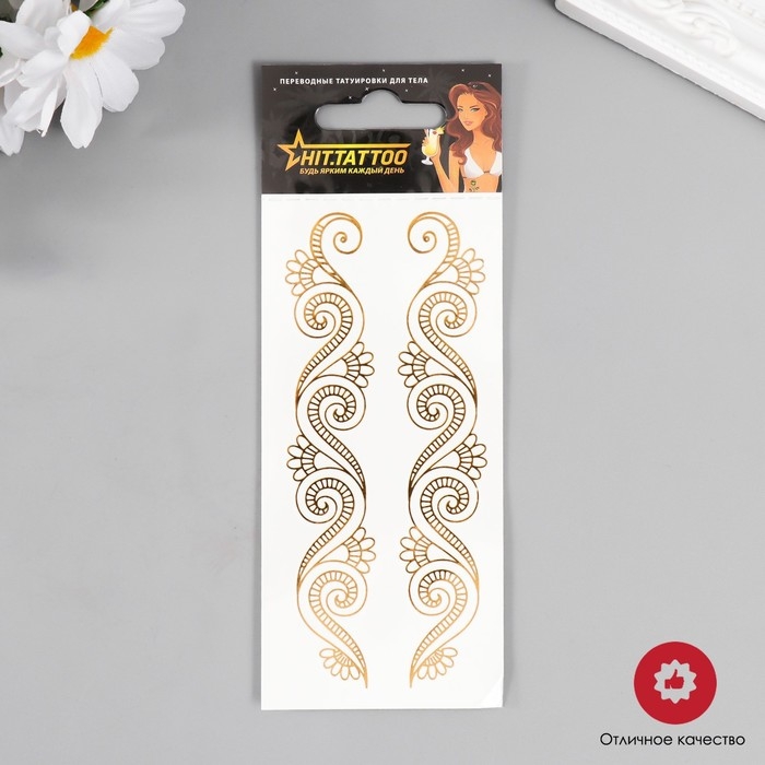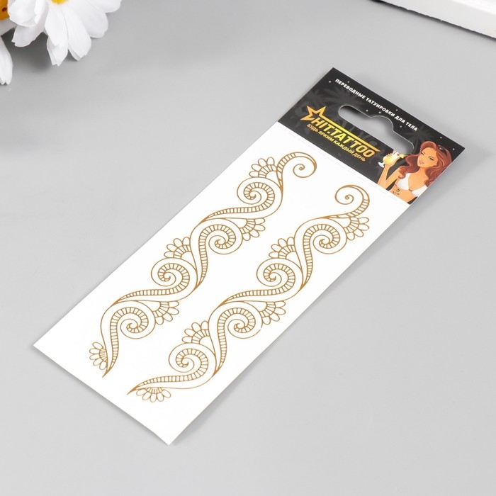 Татуировка на тело браслет "Мехенди" золотой 5х12 см