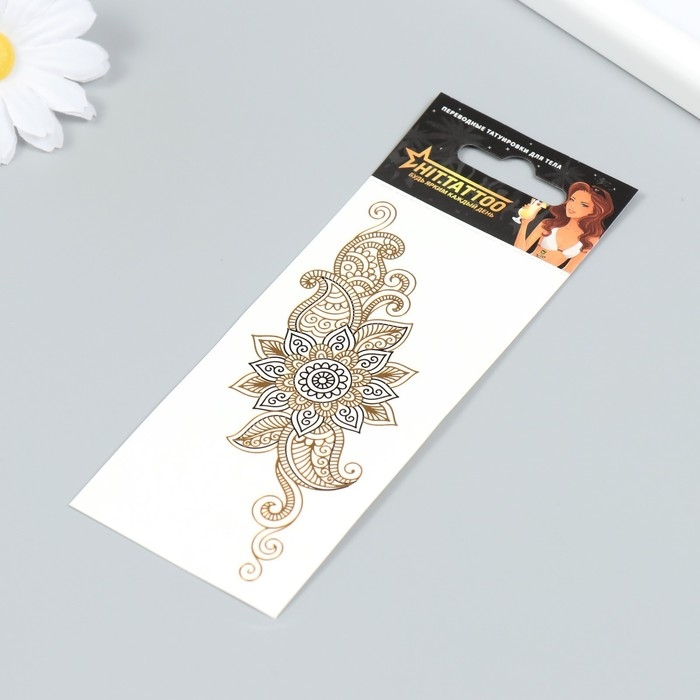 Татуировка на тело браслет "Мехенди" черное с золотом 5х12 см