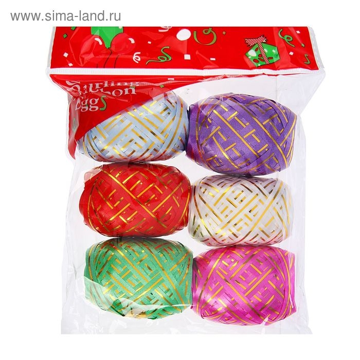 Лента упаковочная, с полосой, микс, 0,5 см х 10 м, набор 6 шт.