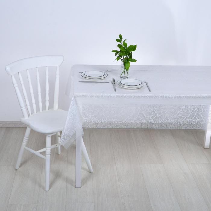 Скатерть на стол Доляна «Праздничный стол», 137×183 см, толщина 30 мкм, цвет белый
