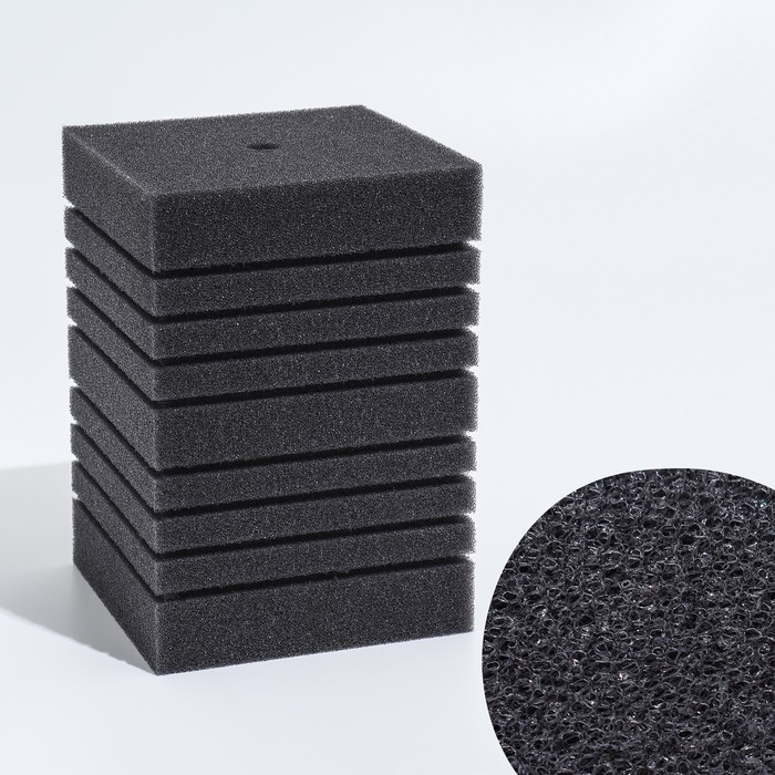 Губка прямоугольная для фильтра № 8, ретикулированная 30 PPI, 8 х 8 х 12 см, черная