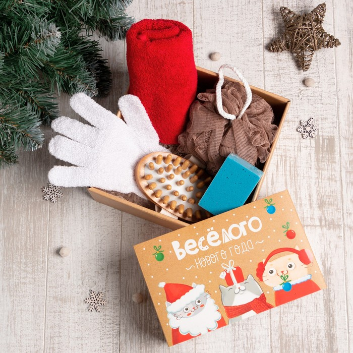 Подарочный набор "Веселого нового года" полотенце 30х60 см и банные акс.(4 предм)